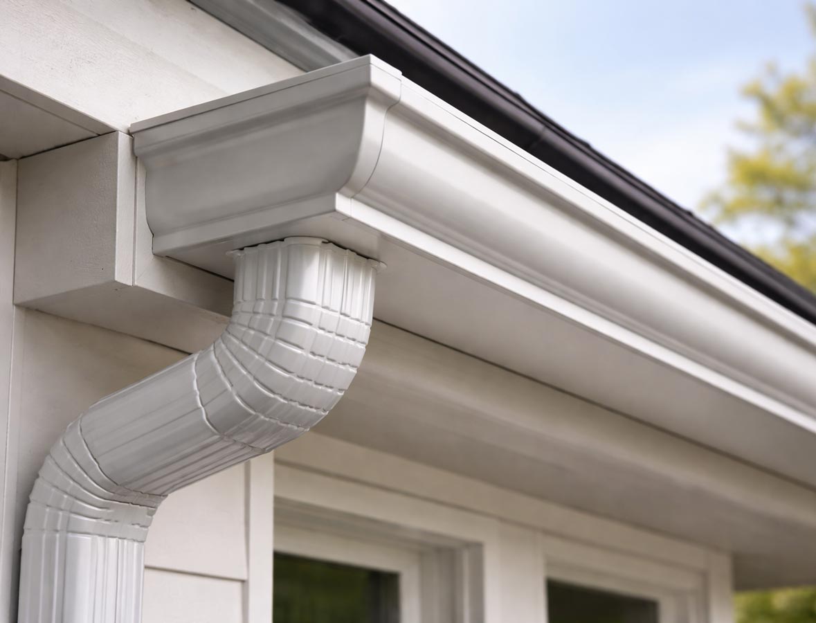 A. Most homes work well with 5″ gutters. Homes with steep roofs, large roof valleys, or heavy rain runoff often benefit from 6″ gutters with larger downspouts to handle higher water volume.